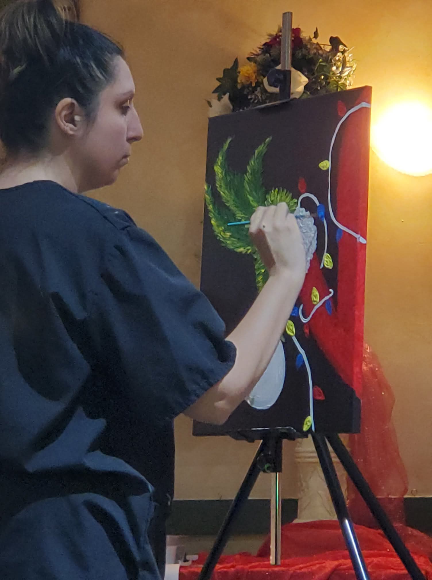 Using your photo I will create a hand painted rendition of it live at the event on a 20"x24" canvas. ($75)
